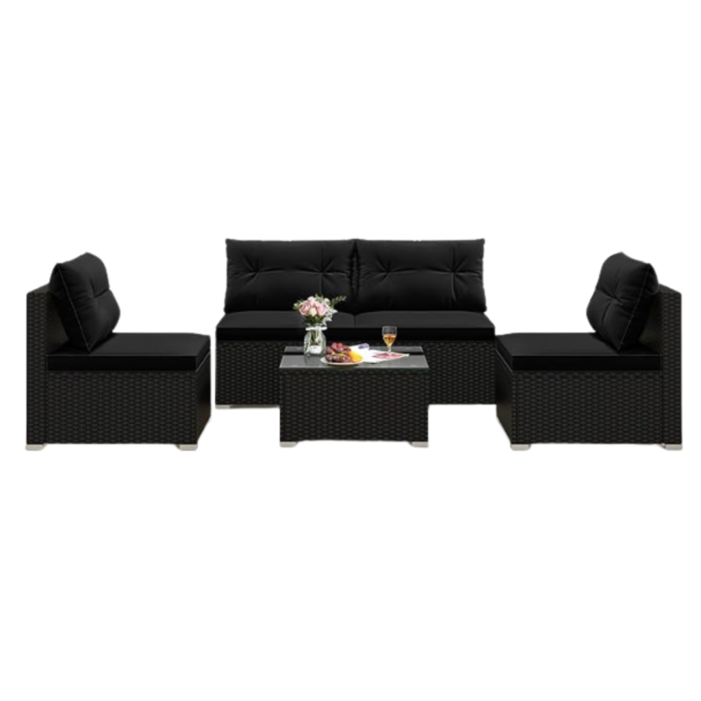 2. Rattan Patio Sofa Set – the comfort centerpiece