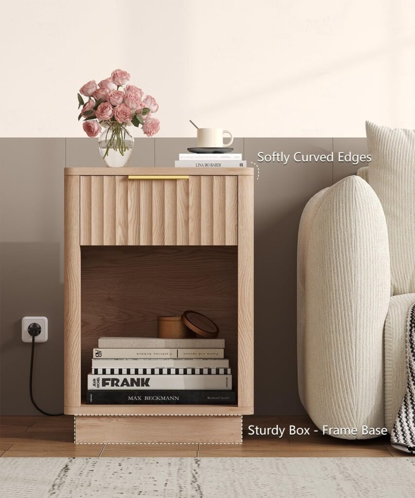 This piece balances everything out. The wood adds warmth, while the fluted design keeps it visually interesting without being too much.