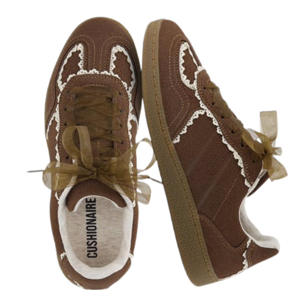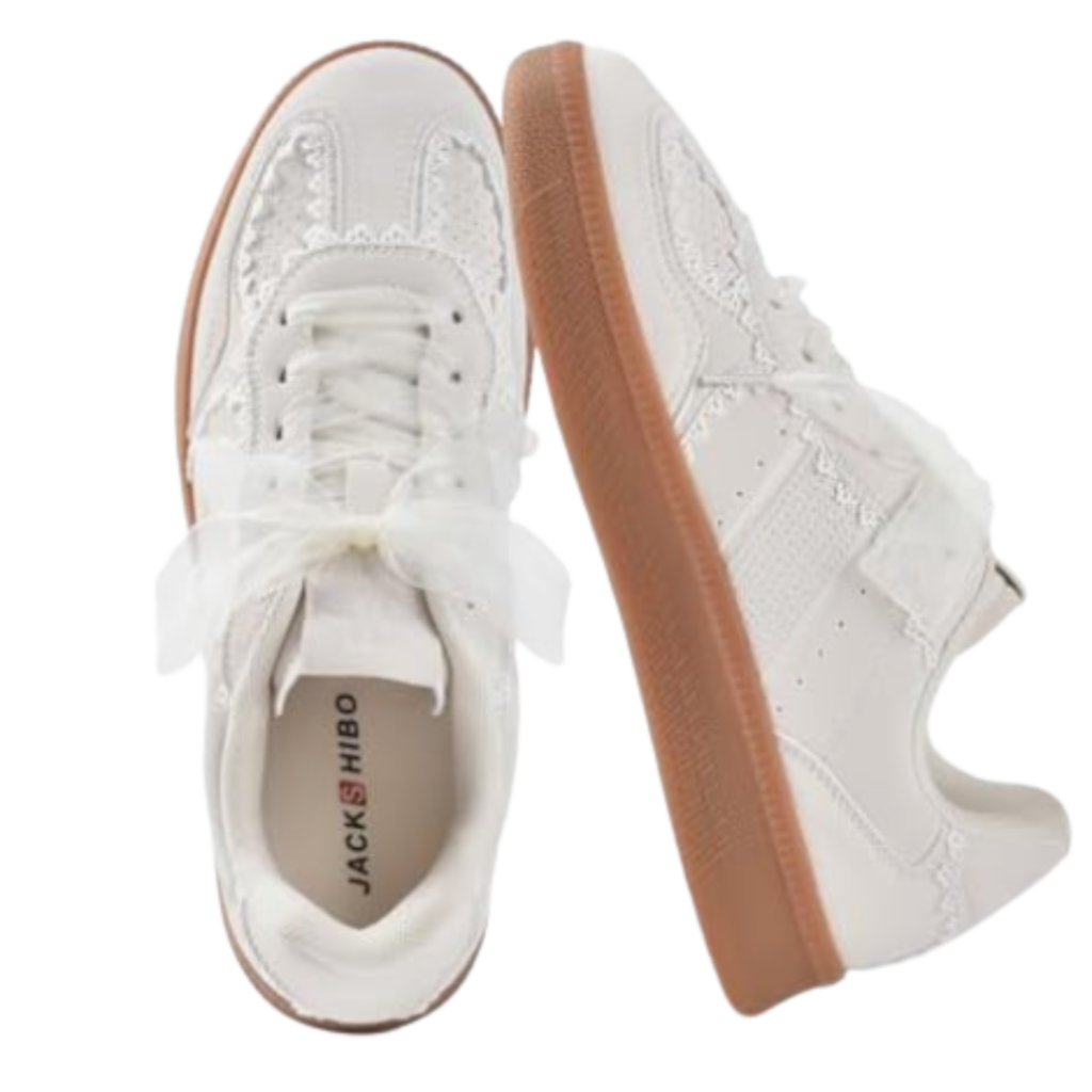 These sneakers are perfect if you love casual shoes with a soft, feminine touch. The delicate lace detailing adds a subtle vintage-inspired charm that makes them stand out while still staying neutral and easy to style.