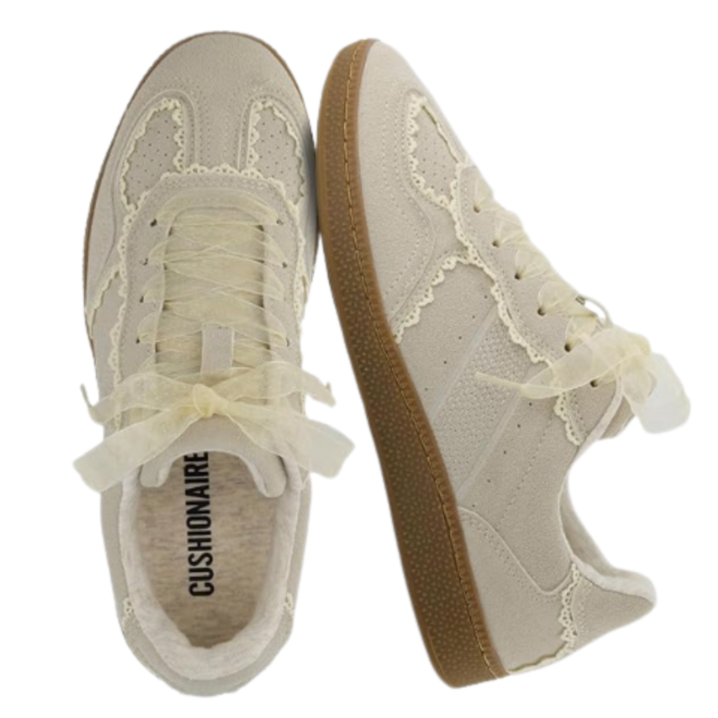 4. Soft Beige Lace Sneakers (Cozy Neutral Aesthetic)