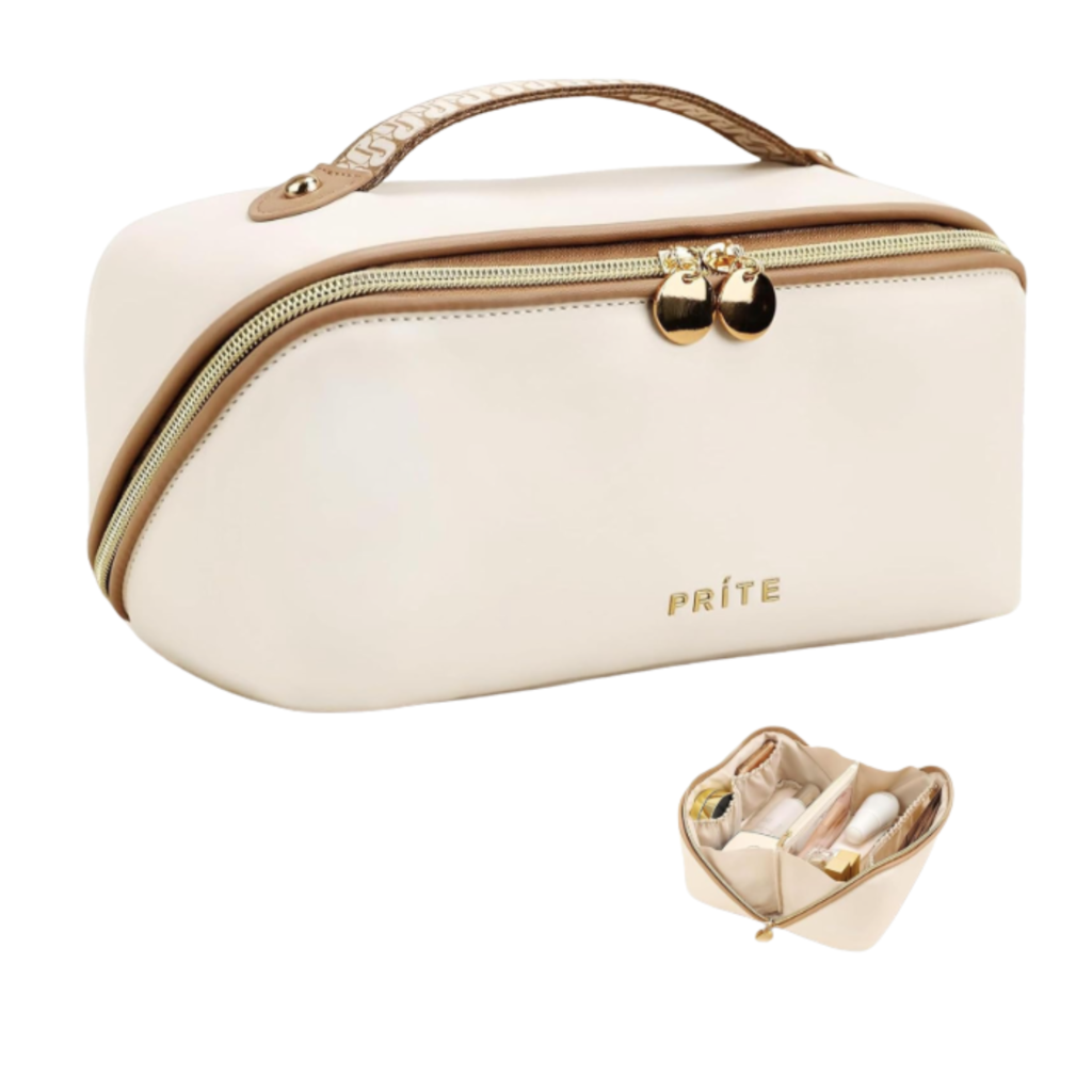 2. Beige Makeup Travel Bag – Cute AND Organized